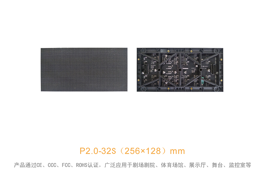 led顯示屏主要技術(shù)參數(shù) 物理點間距2mm 單元板尺寸256X128(mm) 單元箱體尺寸512×512X68(mm) 物理密度250000點/㎡ 發(fā)光點顏色 1R1G1B 單元板分辨率 128*64=8192 DOTS 單元板重量 0.29 kg 箱體分辨率256X256 箱體面積0.262144m² 壓鑄鋁重量7.18KG±0.05KG 主要技術(shù)參數(shù) 最佳視距2m~32m 可視角度水平≧160°可選 垂直≥120°可選 平均功耗<400W/㎡ 最大功耗<1000w/㎡ 控制方式:同步控制 顯示卡 DVI顯卡 驅(qū)動方式 1/32掃描 最大功率 ≤20W 刷新頻率≧2880Hz 白平衡亮度 ≧1000cd/㎡ 換幀頻率≧50/60 亮度調(diào)節(jié)方式 亮度感應(yīng)自動調(diào)節(jié) 16級可調(diào) 軟件手動調(diào)節(jié):100級可調(diào)100 計算機(jī)操作系統(tǒng) WIN98、WINXP、WIN2000,etc 視屏信號 RF、S-Video、RGB、RGBHV、YUV、YC、COMPOSITION等 控制系統(tǒng) PCTV卡(可選optional)+DVI顯卡+主控卡+光纖傳輸(可選optional) 平均無故障時間 ≧5000小時 壽命 75000~100000小時 像素失控率 <0.0002件 項目分類 PH2-32S 封裝形式 三合一 LED封裝方式 1515