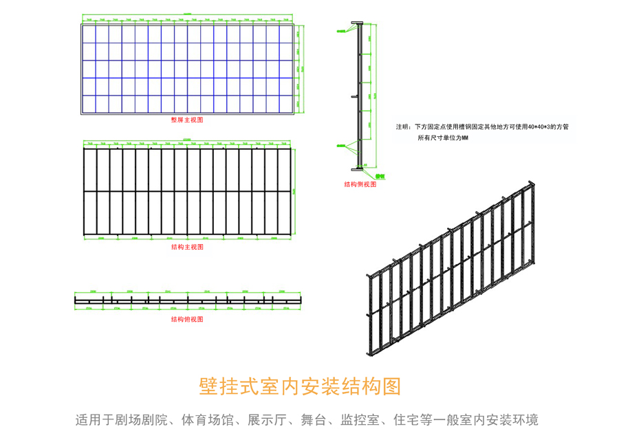 6.安裝鋼結(jié)構(gòu)框架:室內(nèi)P6全彩led顯示屏為輕質(zhì)鋼架,在相應(yīng)的梁柱部分采用化學(xué)鉚栓鉚固鋼板作為承托結(jié)構(gòu),顯示屏鋼制框架與鉚固定鋼板連接