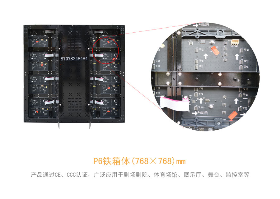 ★室內(nèi)P6顯示屏無縫拼接,套件設(shè)計(jì)把模塊之間的拼接誤差控制在正負(fù)0.1mm以內(nèi),易于安裝,可根據(jù)用戶的需求做成任意形狀,組裝拆卸,維修方便。